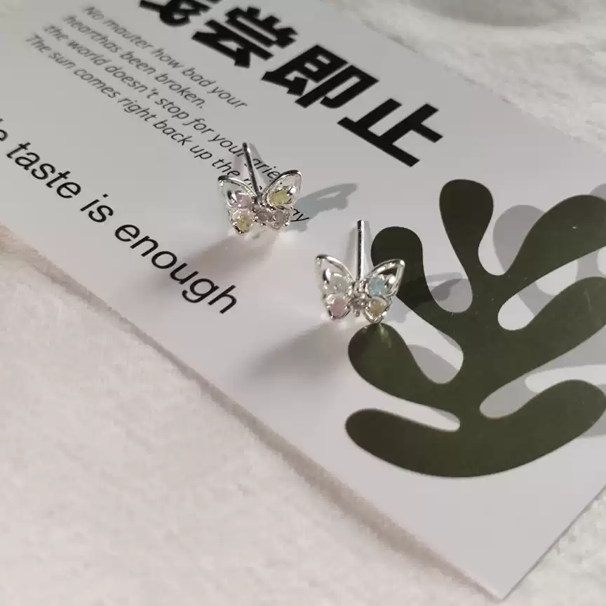 Colorful zirconia butterfly stud earrings with hypoallergenic 925 silver posts, showcasing delicate crackle ice zircon.
