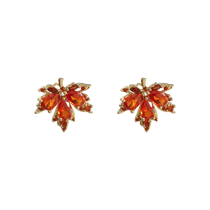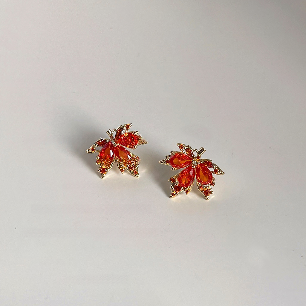 Crimson maple leaf earrings featuring hypoallergenic 925 silver pins.