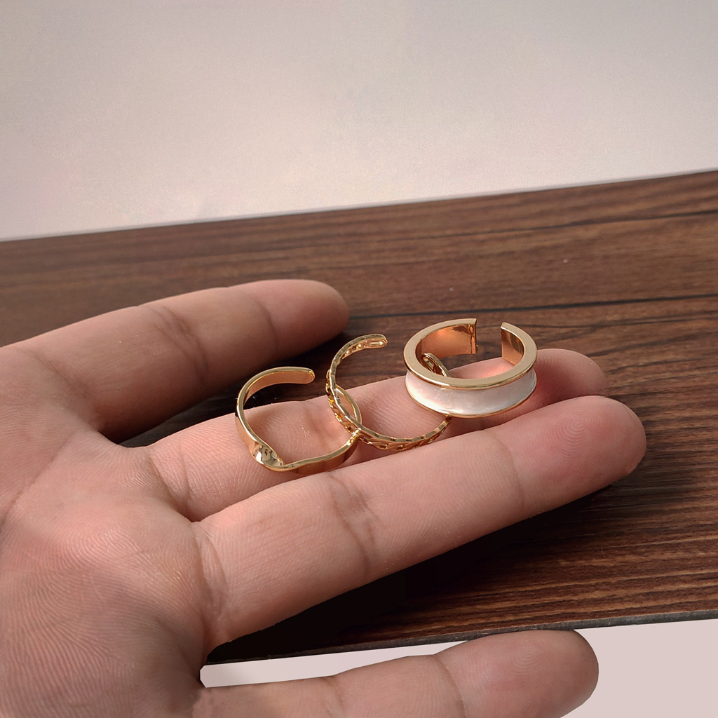 A stylish and minimalist set of adjustable open rings, designed for versatile wear. They can be worn individually or stacked together, allowing for creative combinations.